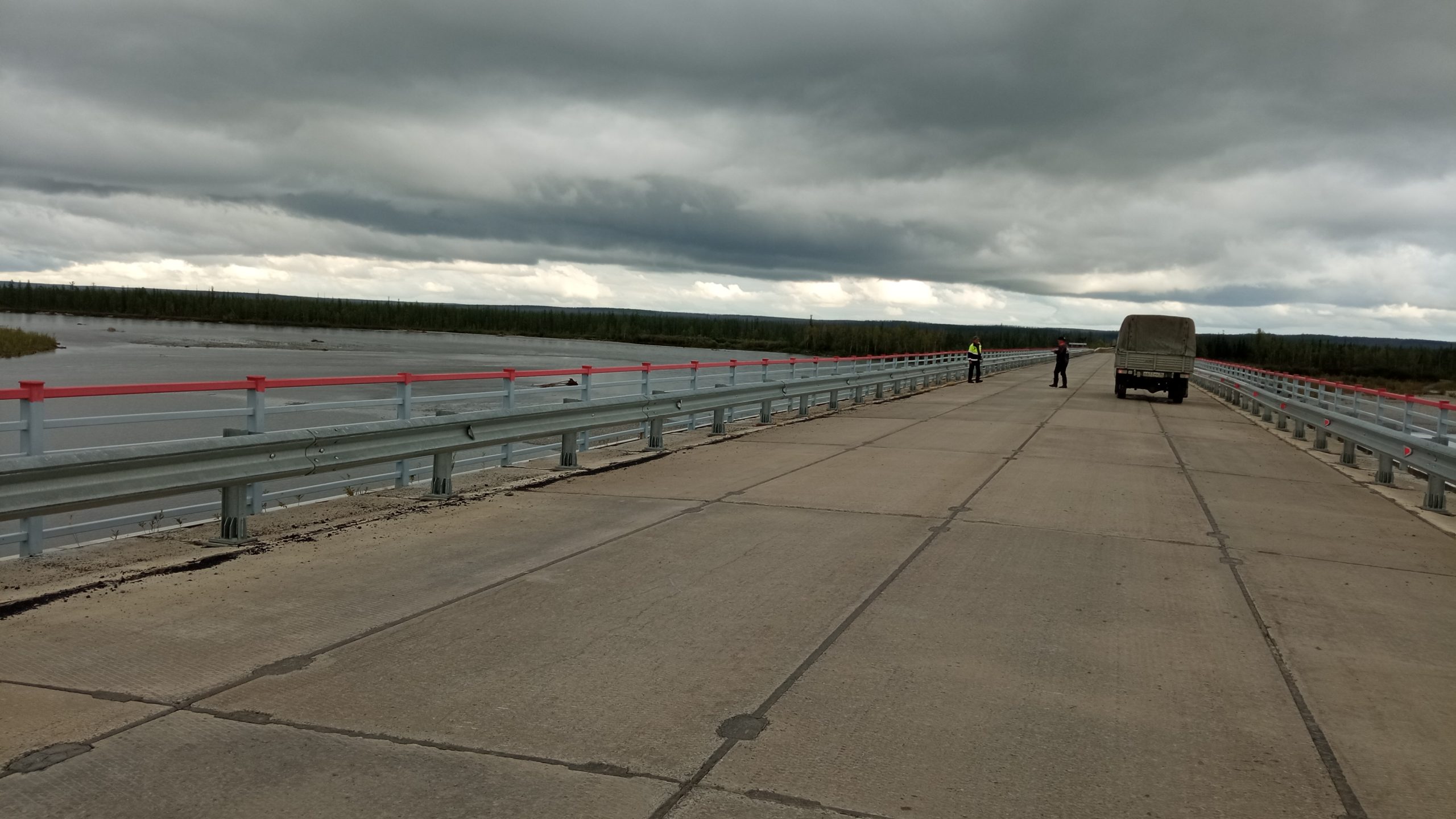 Мы сделали остановку на мосту через Восточную Хандыгу.  Хороший мост, построенный в бытность Ильи Семеновича на муниципальной службе. Как он добыл плиты для строительства – почти детективная история, но главное — нашли.