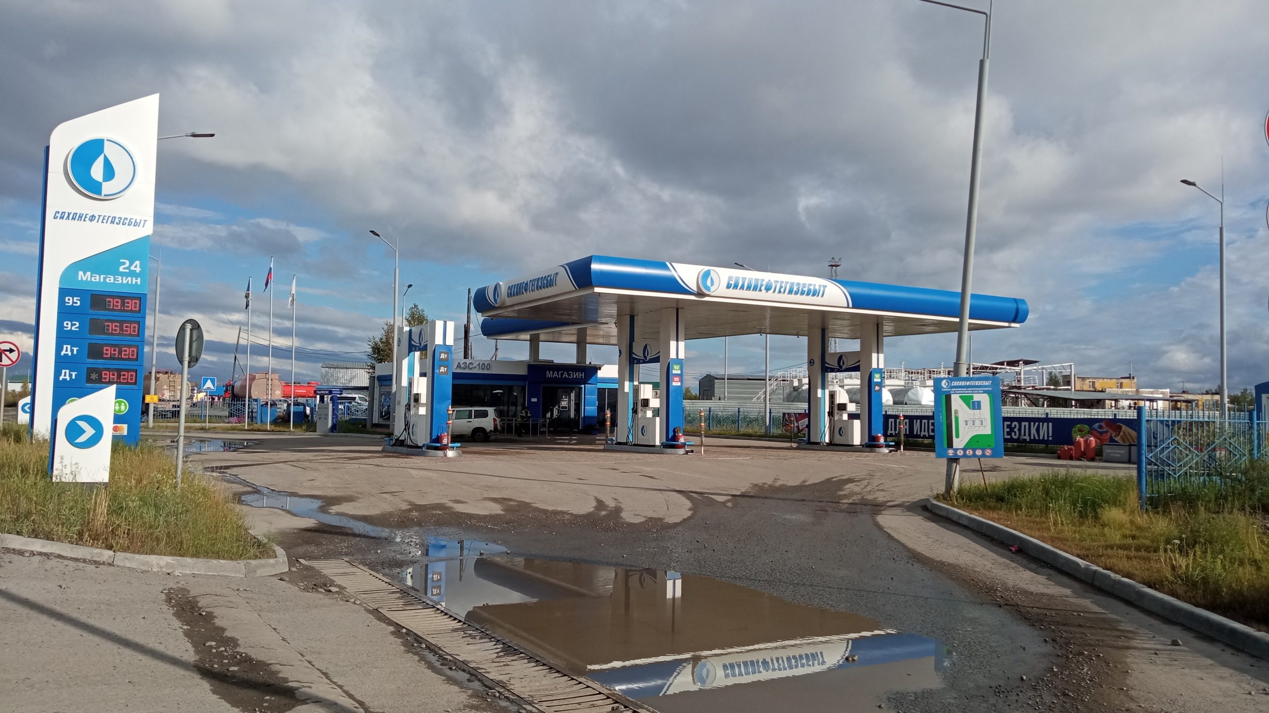 На «Колыме» мы заехали на АЗС, которую в 2022 году построило ДЭП №135. Долгожданная, современная, удобная, с кафе и магазином. Разумеется, захотелось сфотографировать такой объект, но это как-то обеспокоило охранника. Однако, когда он увидел среди нас Илью Семеновича, сразу успокоился. Поздоровался с ним уважительно.