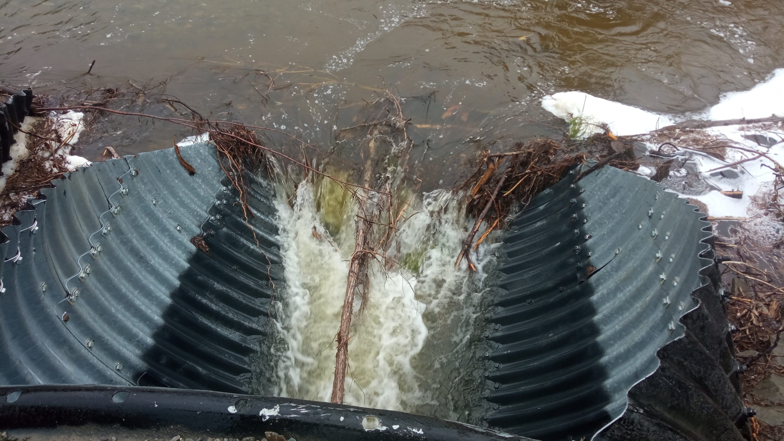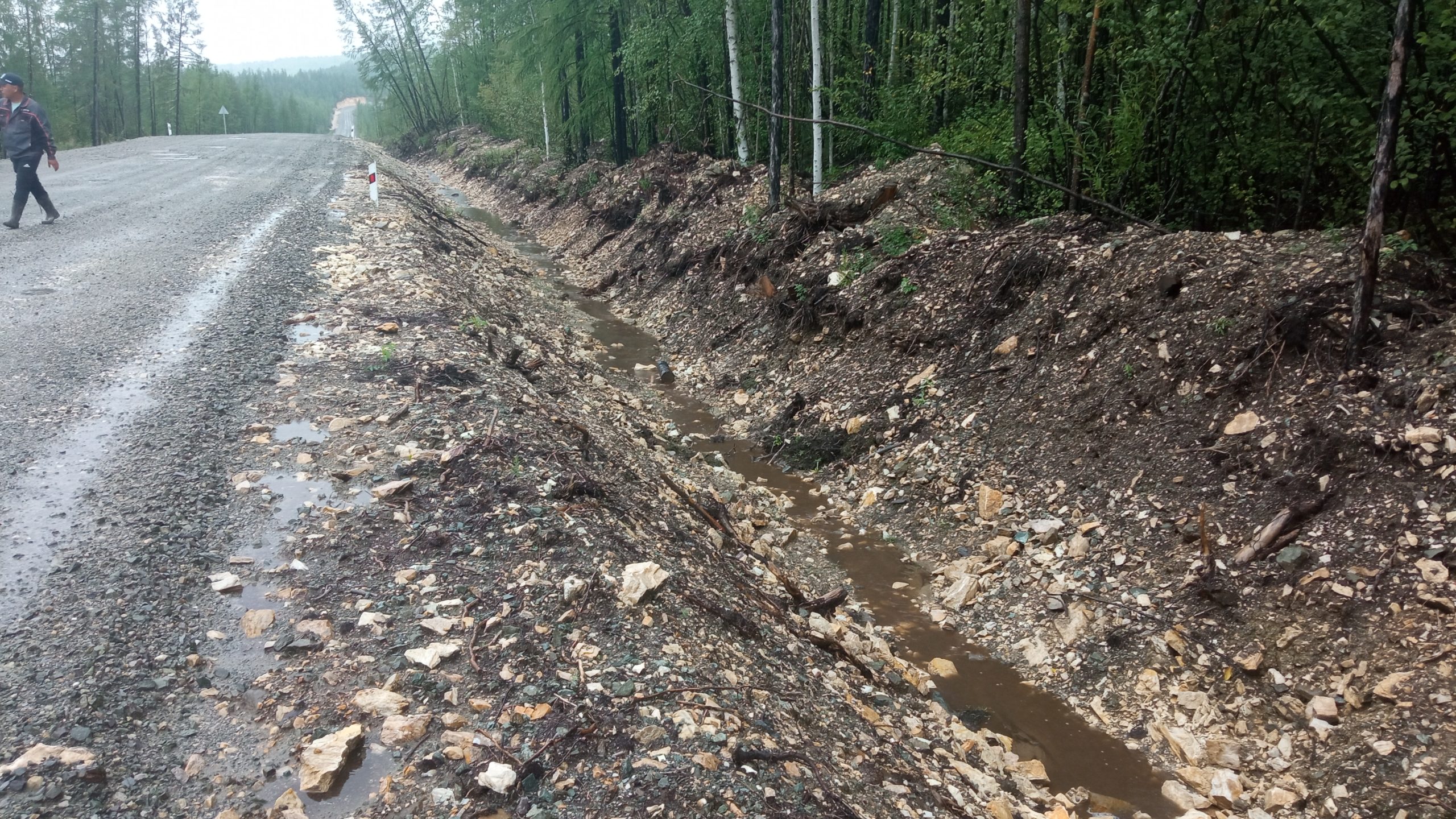 Это когда с горных склонов сползает всякая всячина – грунт, растительность, иногда крупная. Коряги забивают водопропускные трубы. Мы по пути увидели такое – целое деревце залезло в трубу, вот будет работа для дорожников. Канавы вдоль дороги тоже надо чистить. Увидели их до и после очистки – картина из серии «почувствуйте разницу».