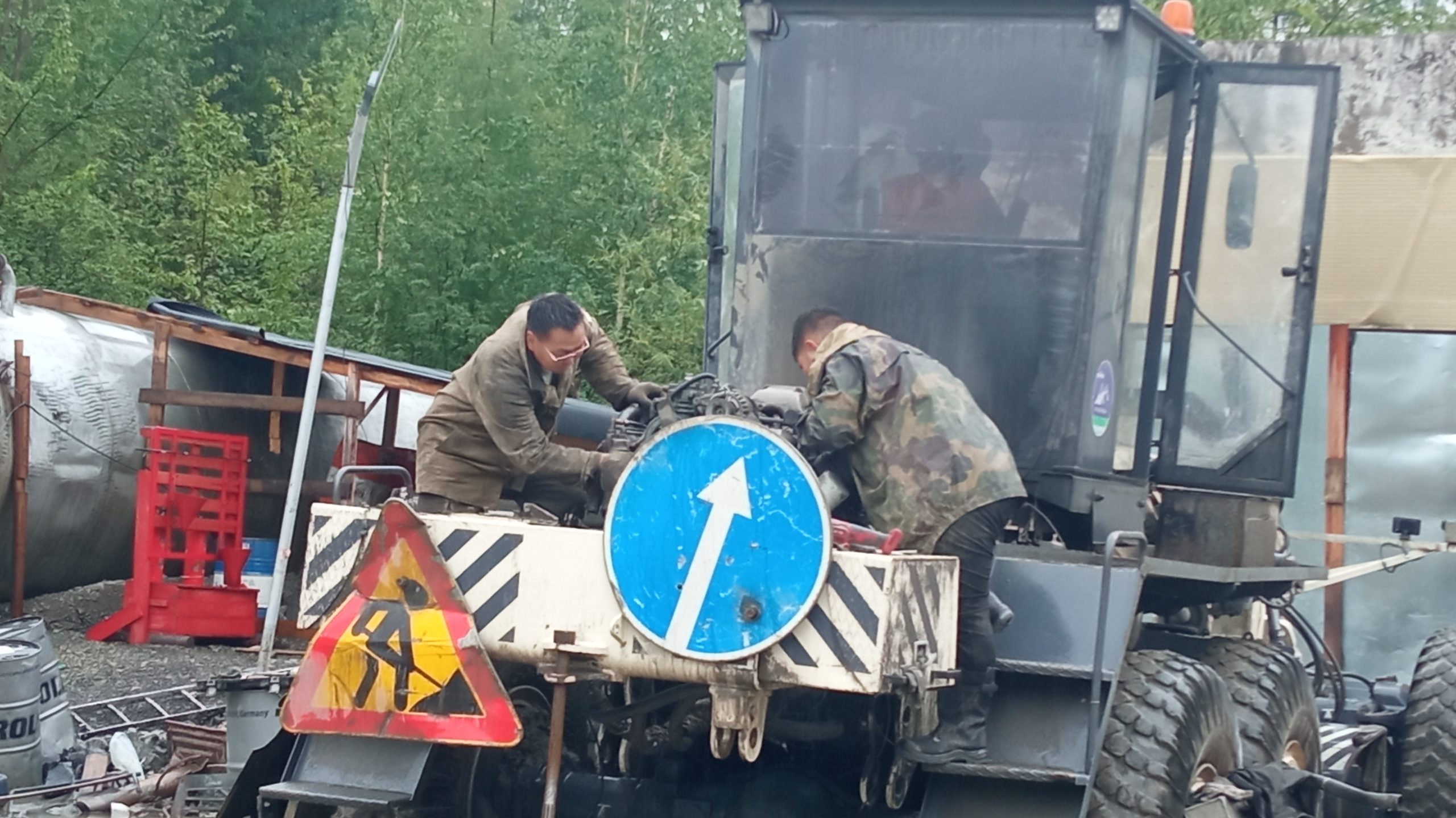 Рабочие в поселок приезжают обычно на неделю, иногда на две, зависит от объема работ на дороге или на ремонте техники. В этот день ремонтом занимались механизатор Виталий Мищук, слесари по ремонту Валерий Слепцов и Сергей Попов.