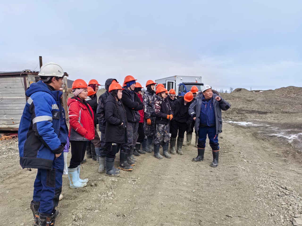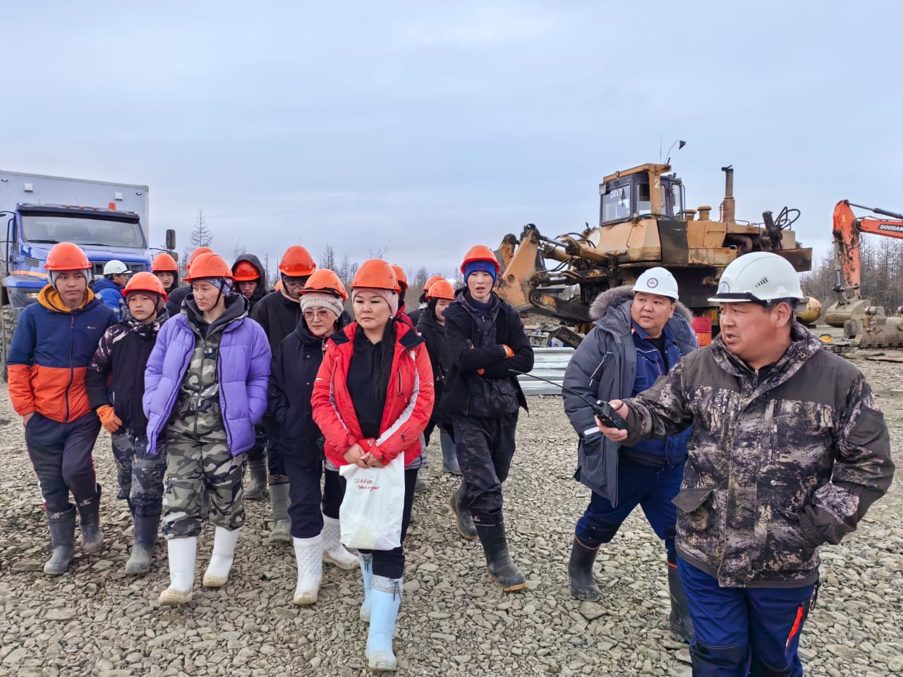 Показать ребятам, как ведется добыча на участке Тирехтях, предложил директор Силянняхской школы Александр Давыдов. В «Янолово» инициативу поддержали. В субботу отправили в село Сайылык автобус, два часа пути, и вот на участке гости – 16 учеников старших и средних классов, директор и трое учителей, а также один из родителей.