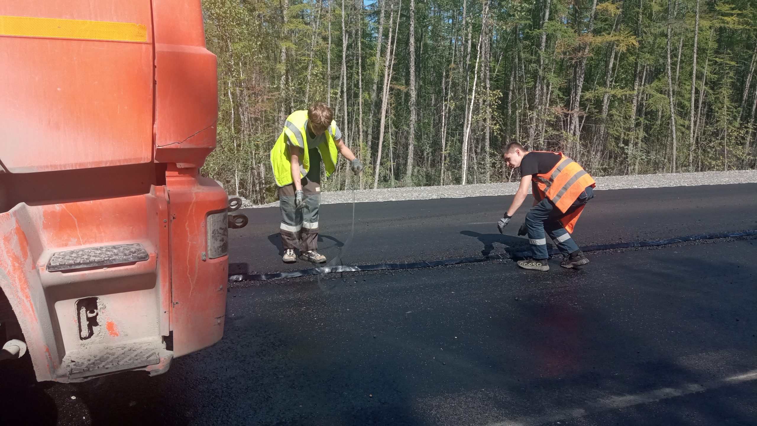 Летом здесь много студентов, в основном, из Хандыгского горно-геологического техникума. Кто-то проходит производственную практику, кто-то просто подрабатывает в каникулы. Работают на укладке матрасов Рено, установке дорожных знаков и барьерных ограждений, окашивании обочин. И на технике работают – те, кто обучается соответствующим специальностям.