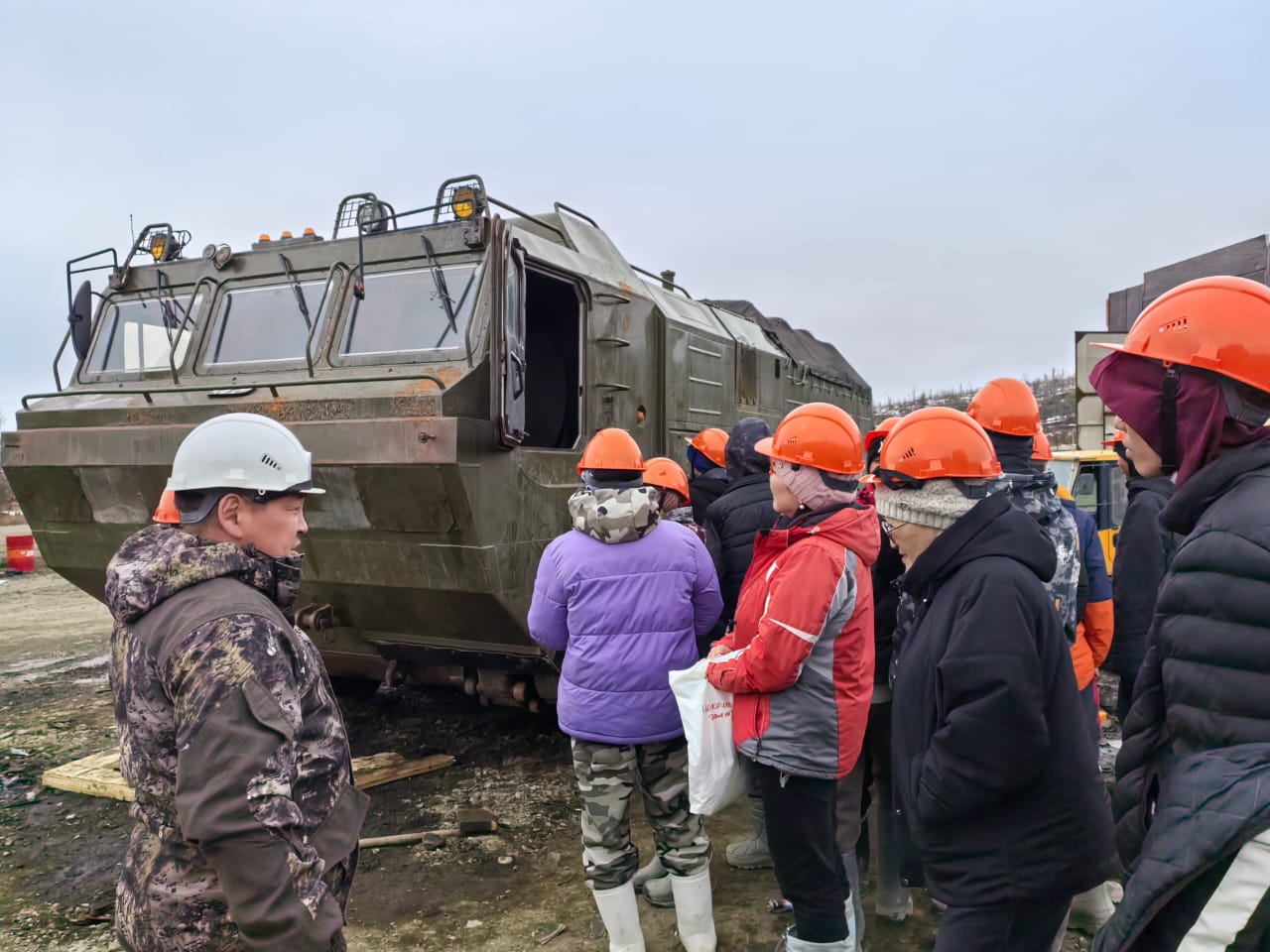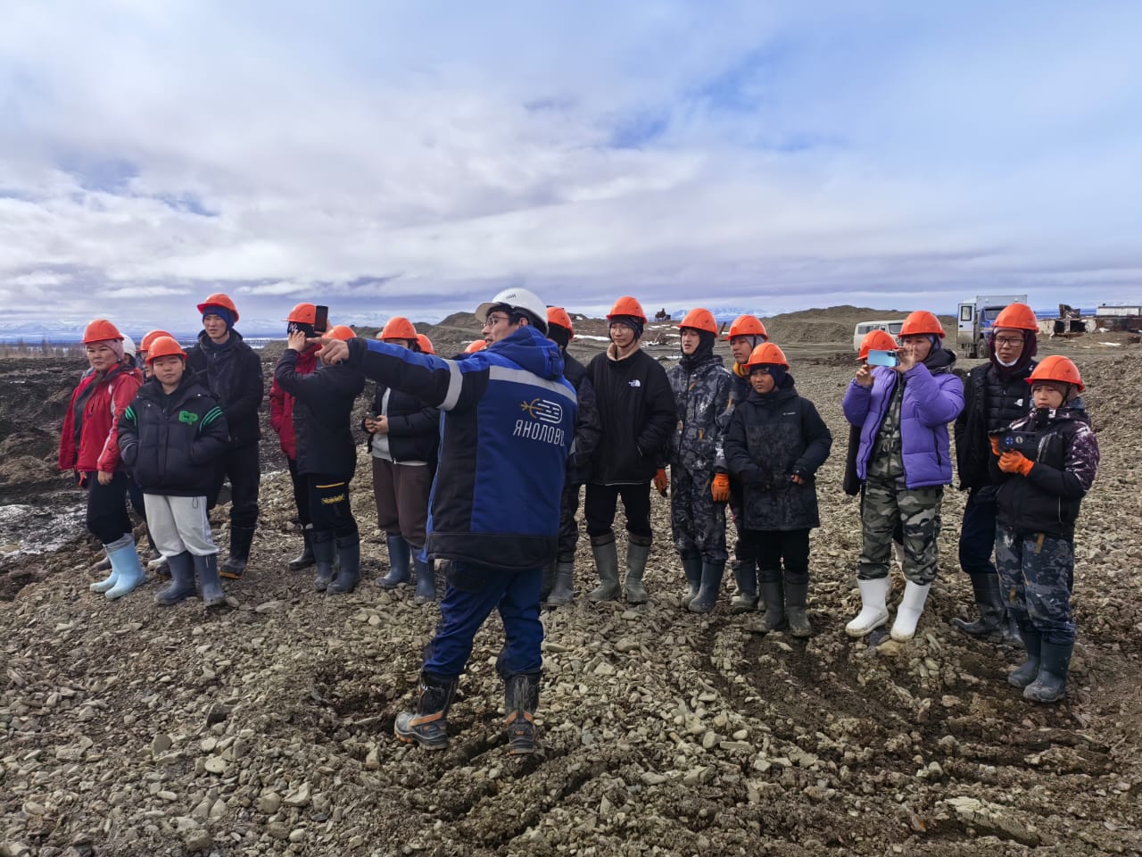 Показать ребятам, как ведется добыча на участке Тирехтях, предложил директор Силянняхской школы Александр Давыдов. В «Янолово» инициативу поддержали. В субботу отправили в село Сайылык автобус, два часа пути, и вот на участке гости – 16 учеников старших и средних классов, директор и трое учителей, а также один из родителей.