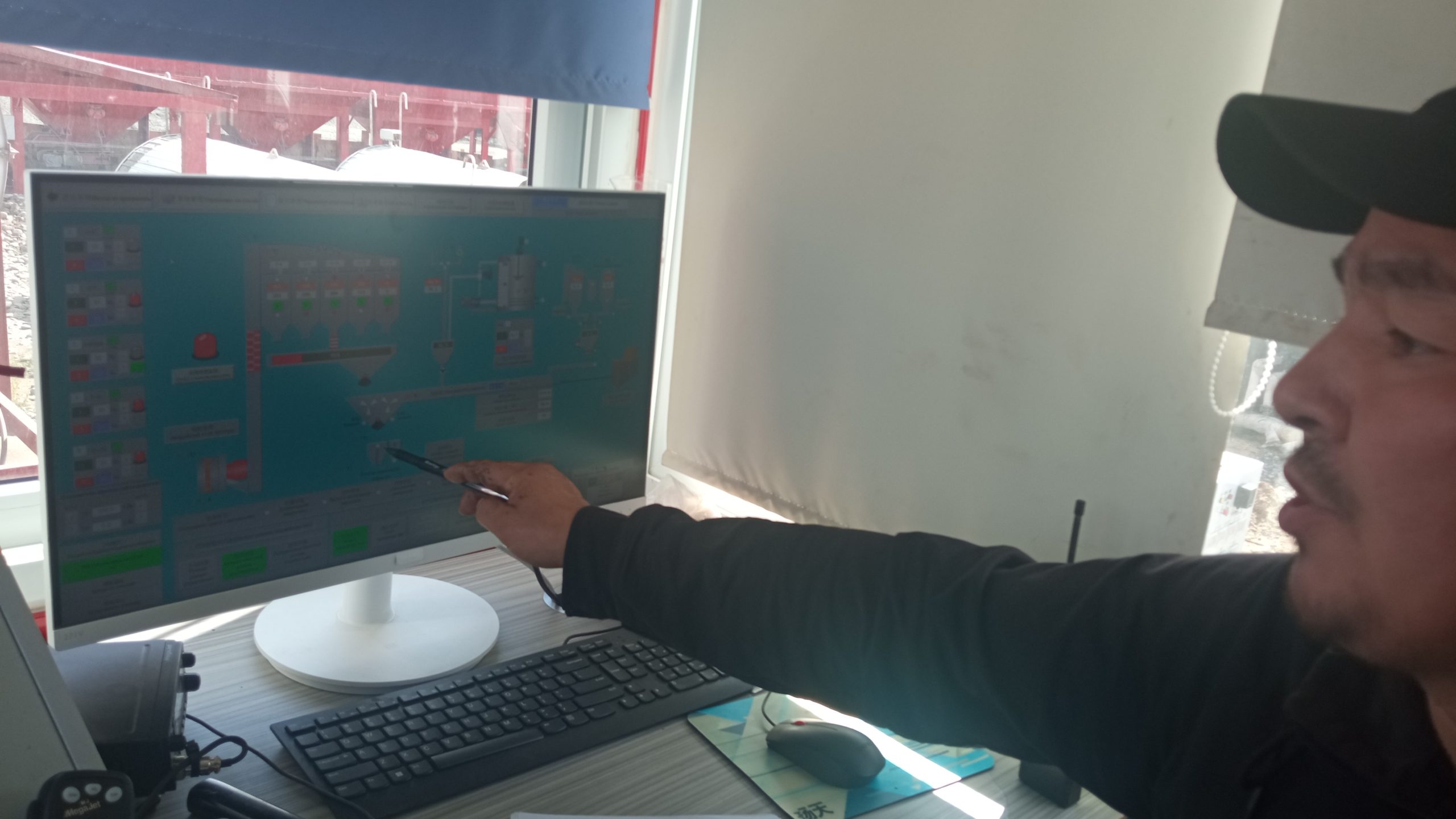 Спартак Булдаков на АБЗ с момента его запуска, так что ему здесь все хорошо известно в деталях. Работа начинается ранним утром, часов в шесть. Первым делом запускается индукционная установка для производства битума (отдельный небольшой модуль рядом с установкой). Смешиваются два компонента кислоты, эмульгатор, битум и вода. В результате получается битумная эмульсия, которая используется для пропитки дорожного основания и скрпеления слоев асфальта.