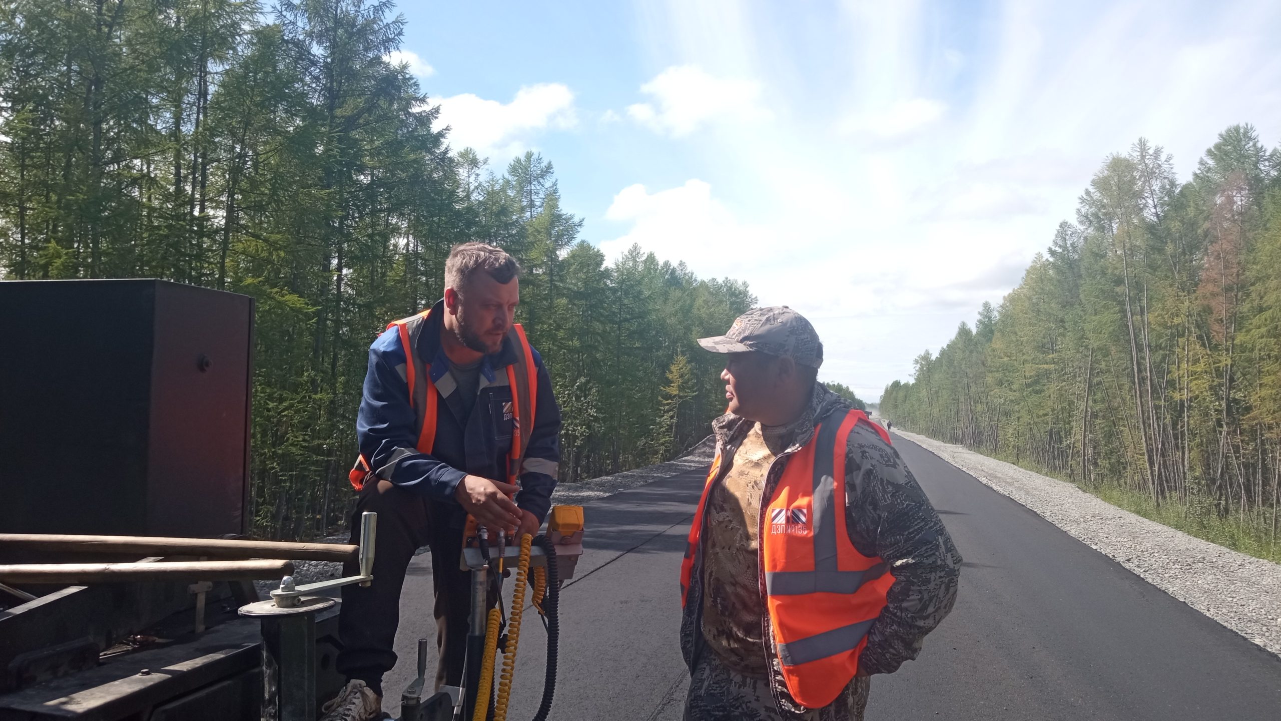 Летом здесь много студентов, в основном, из Хандыгского горно-геологического техникума. Кто-то проходит производственную практику, кто-то просто подрабатывает в каникулы. Работают на укладке матрасов Рено, установке дорожных знаков и барьерных ограждений, окашивании обочин. И на технике работают – те, кто обучается соответствующим специальностям.